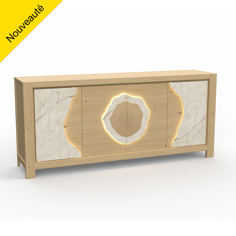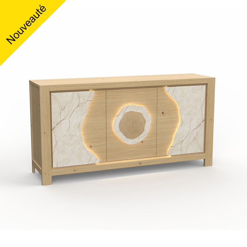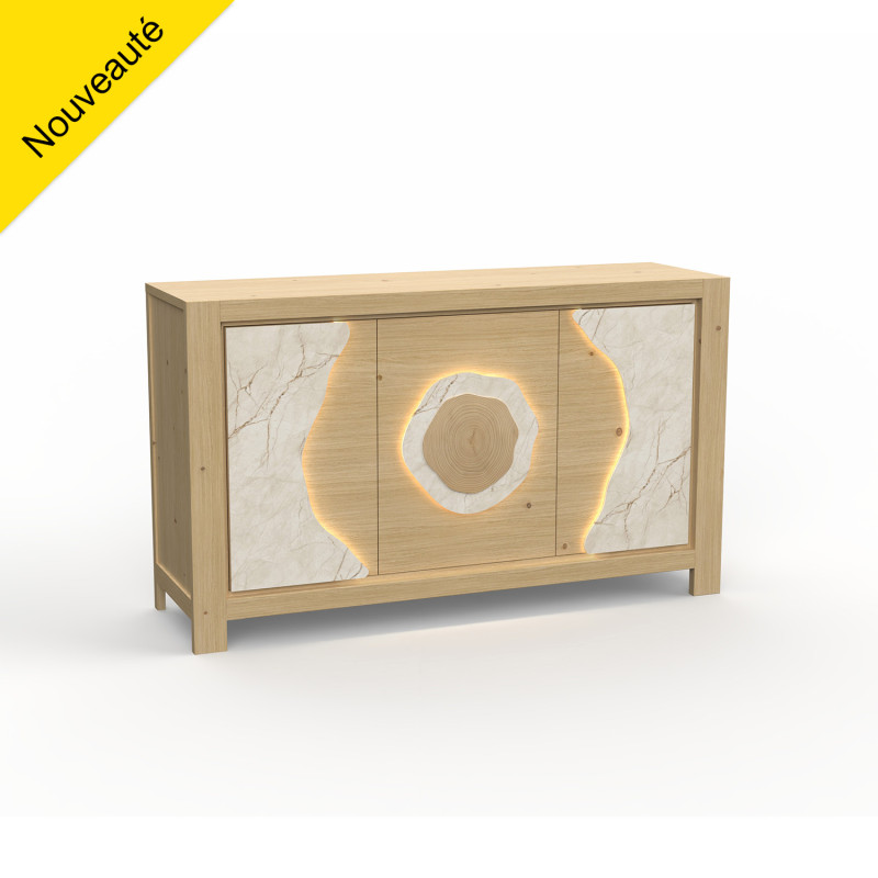 Côtés : Panneaux de particules revêtus de placage chêne.