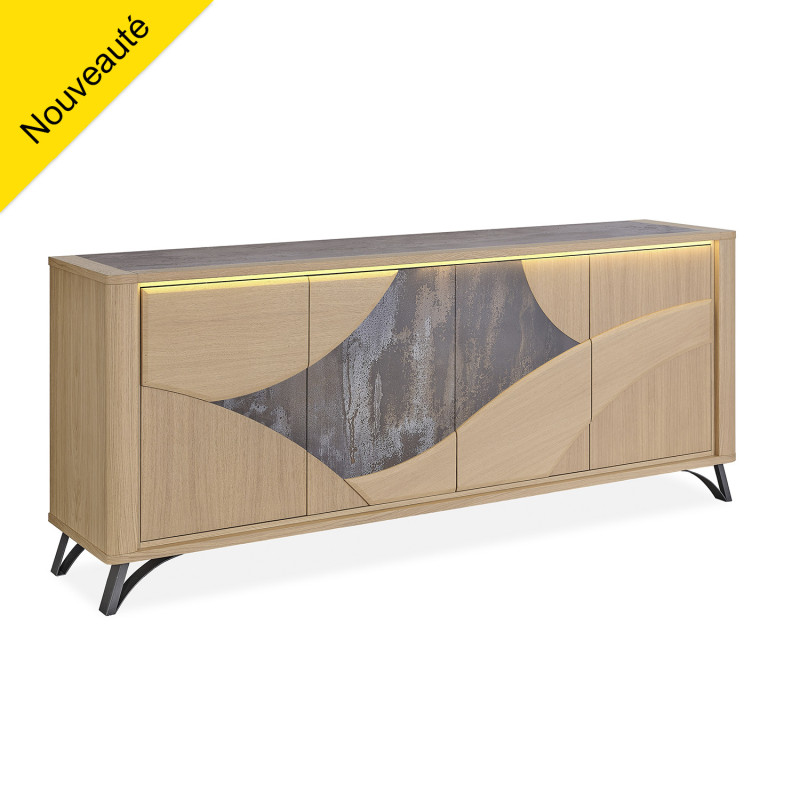 Côtés : Panneaux de particules revêtus de placage chêne.