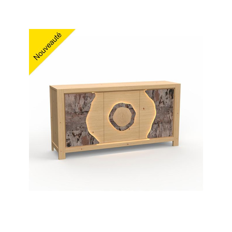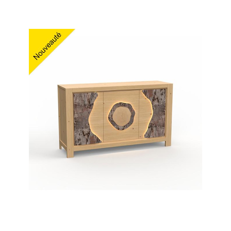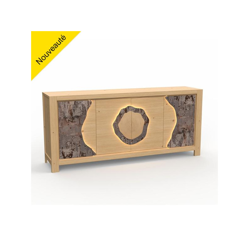 Côtés : Panneaux de particules revêtus de placage chêne.