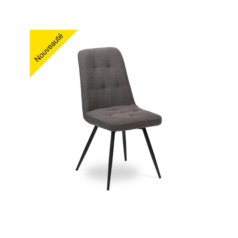 Piètement fer finition époxy gris anthracite - Hauteur assise 49cm Composition tissu : 90% polyester/10% nylon Martindale : 25000 - résistance lumière : >4 - Densité mousse PU : 26kg/m3 Structure : Coque contreplaqué Livrée démontée - Emballée par 2 ou 4 L.: 46 - H.: 91 - P.: 61 - 5,1 Kgs